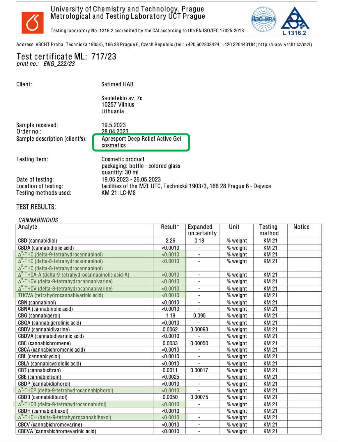 - Product ingredients and composition are proven and certified by accredited Metrological and Testing Laboratory UCT, Prague